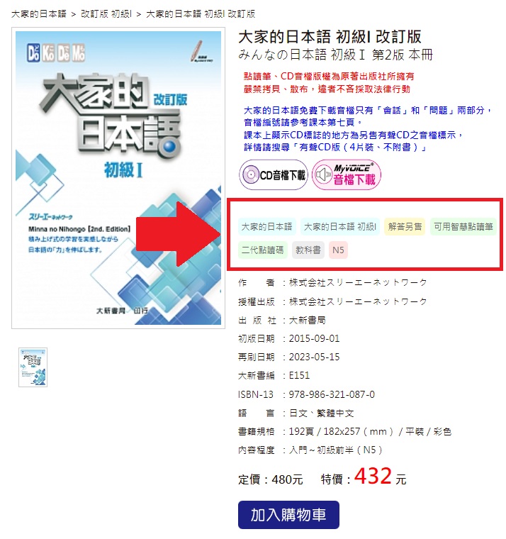 本公司網站新改版之後,在書名下方有很多「書籍標籤」。 書籍標籤顯示這本書有什麼樣的特點,以及點擊書籍標籤後,可以找到有這個標籤的所有書籍。