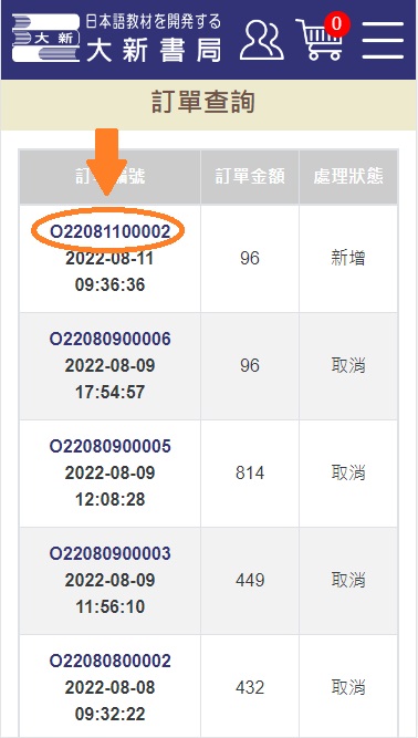 可以於「訂單查詢」中找到您下的訂單,