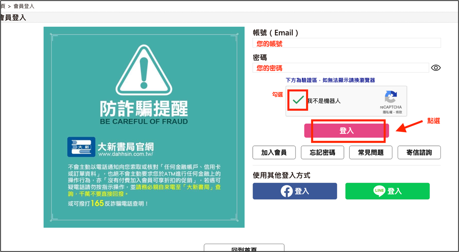 步驟一:登入會員