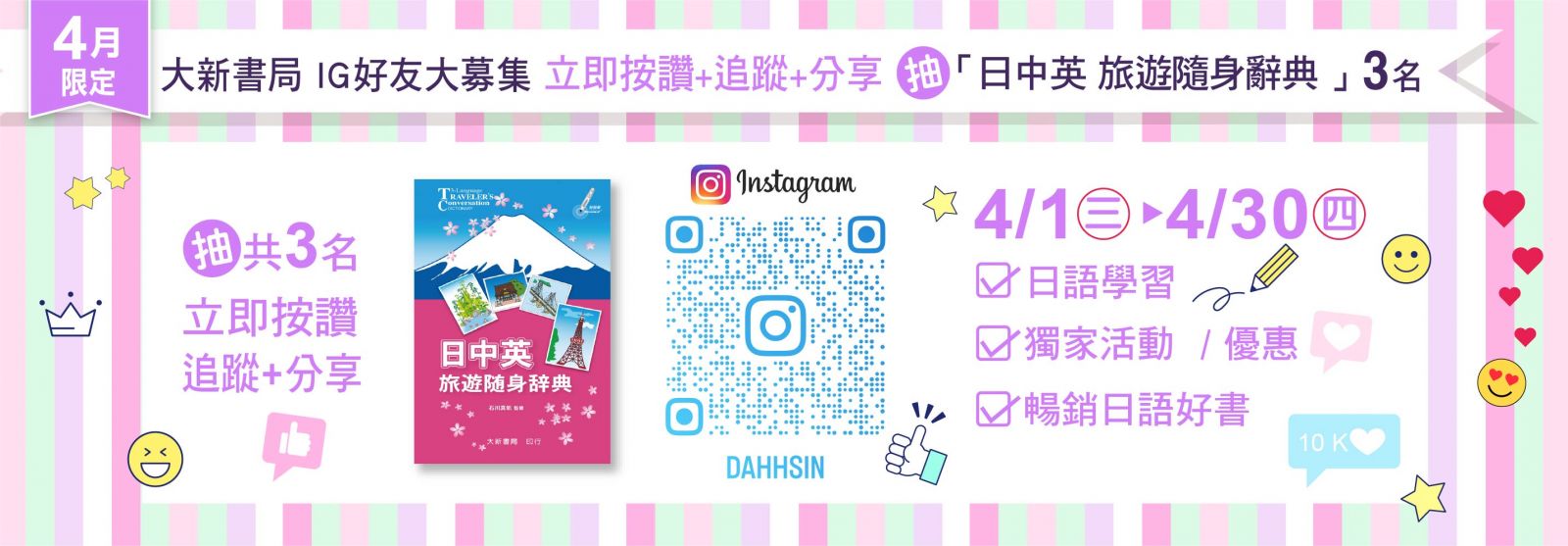 4月 IG好友大募集!抽 「日中英 旅遊隨身辭典」