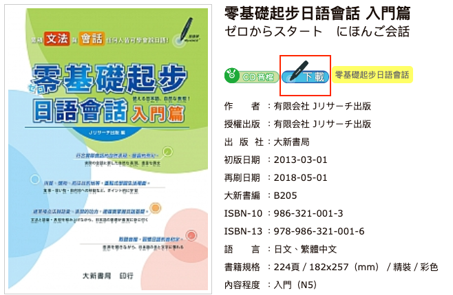 ②進入書籍介紹頁面,點選 點讀筆圖示 下載音檔。