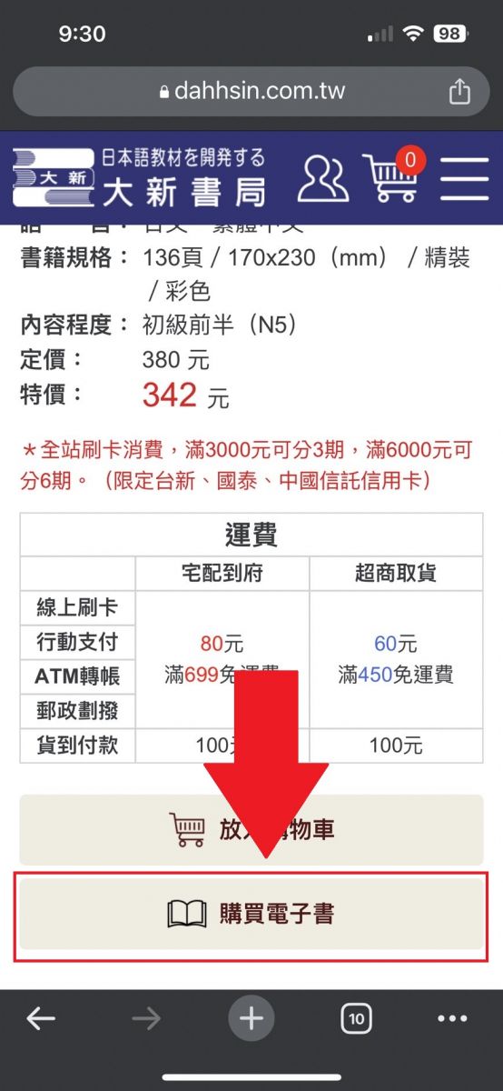 二、加入購物車旁邊的「購買電子書」按鈕按下去