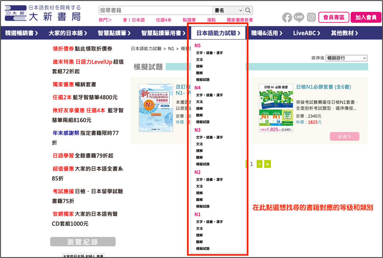 》系列。也可以直接至官網點選應考等級與考試類別(如下圖),即會出現相應書籍,可根據內容自行挑選。