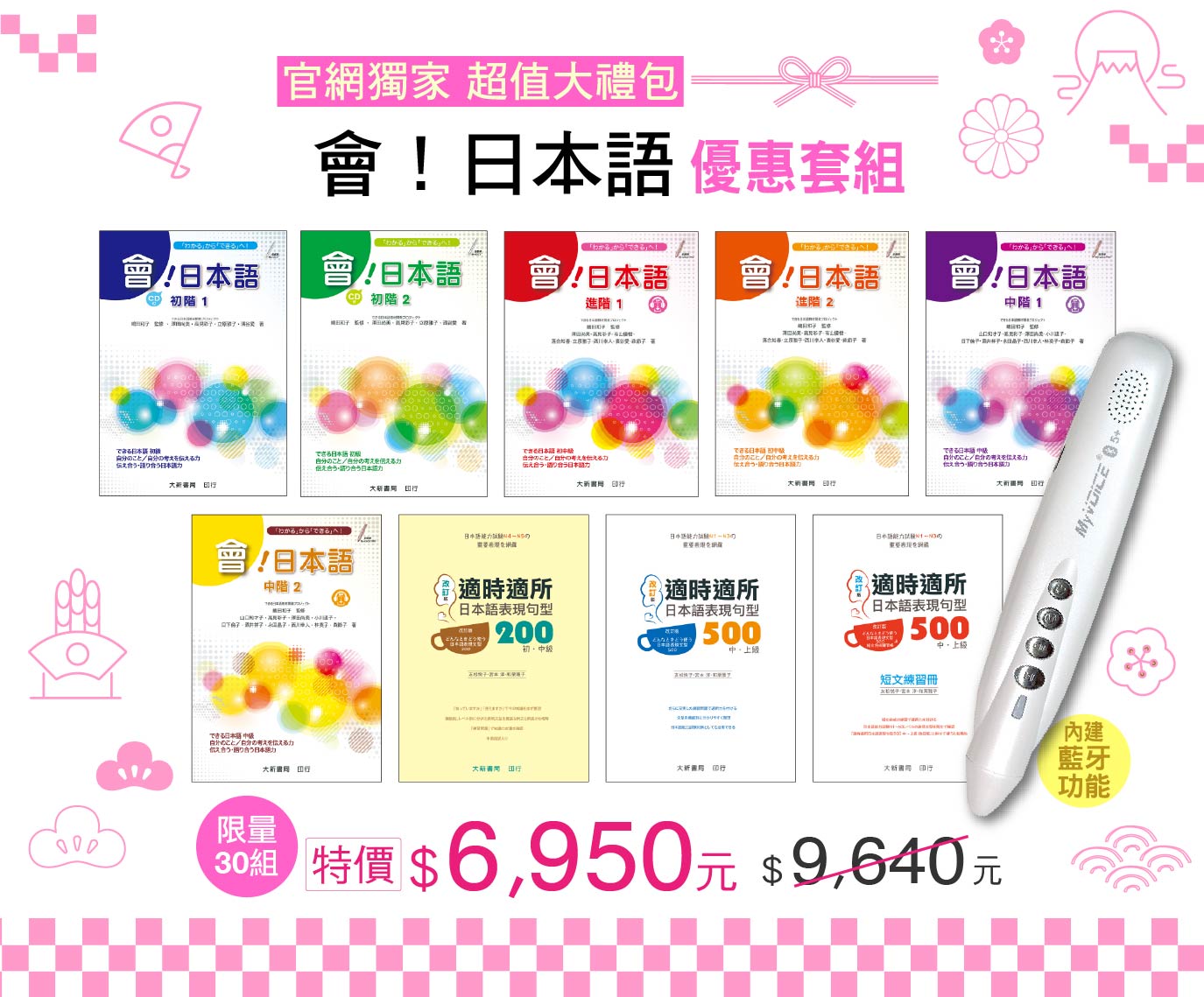 會!日本語藍牙智慧筆套組 超值大禮包(全9書)+My VOICE Pro 藍牙智慧點讀筆套組 珍珠白/32G(Type-C充電版)