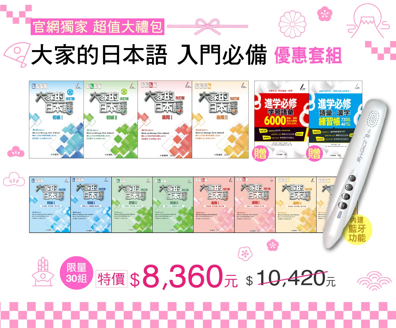 大家的日本語 入門必備(全14書)+藍牙智慧點讀筆 珍珠白/32G 整套定價10,420元 優惠價8360元
