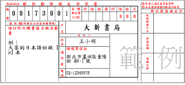2.  戶名:大新書局