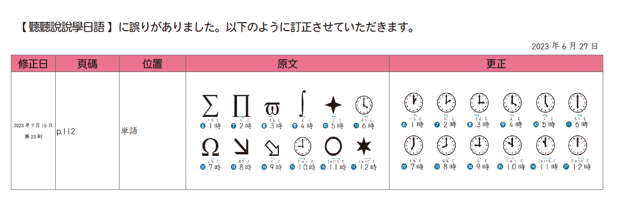 更正啟事《聽聽說說學日語》書籍勘誤