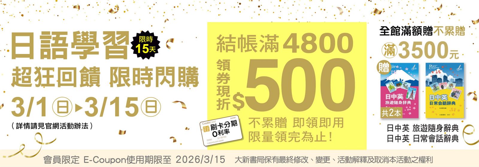 ★日語學習 限時回饋!500元E-Coupon現領現折 (3/1~3/15)